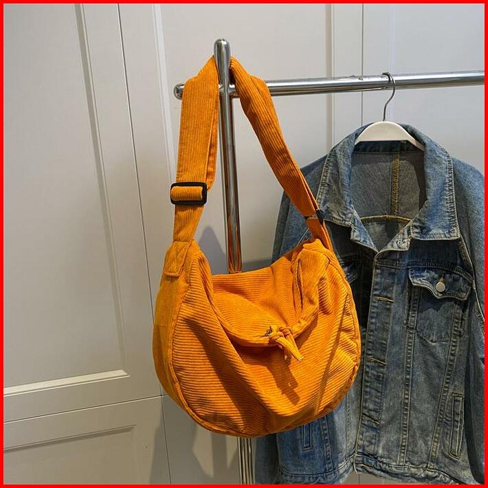 Ready Tas Korduroi Kasual Wanita Tas Bahu Retro Baru Tas Selempang Sederhana Wanita Tas Siswa Berkapasitas Besar