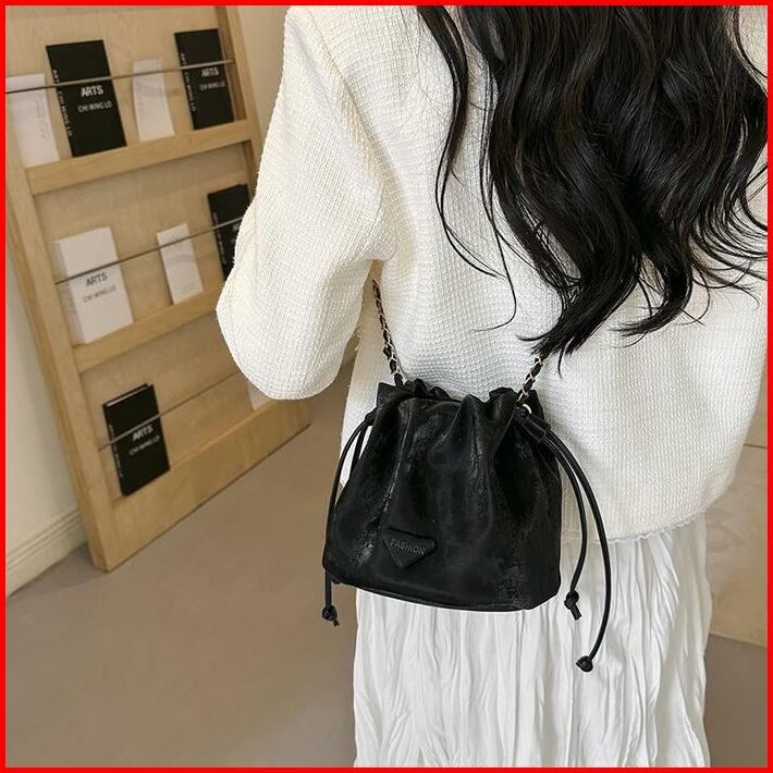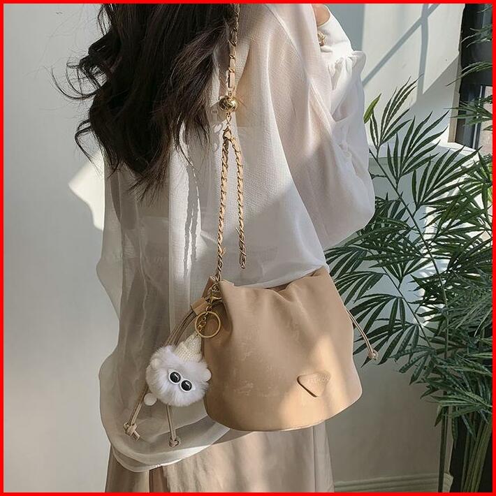Mini Bucket Bag Tas Bahu Wanita Tas Selempang Kulit Pu Yang Elegan 2024 Warna Solid Tas Wanita Fashion Korean Shoulder B