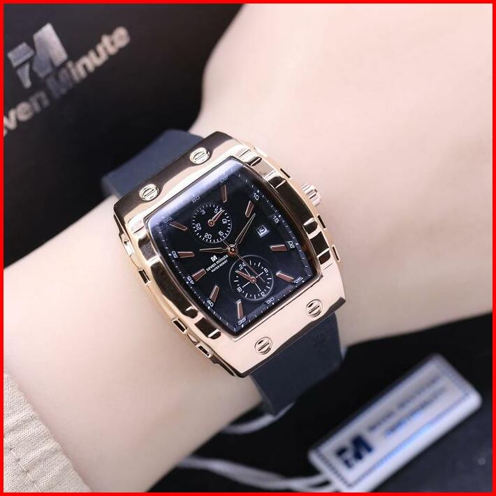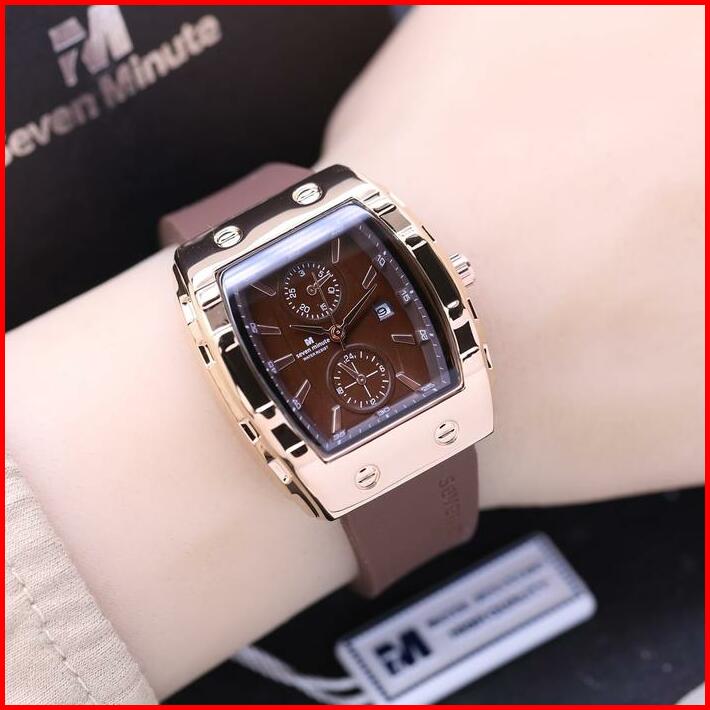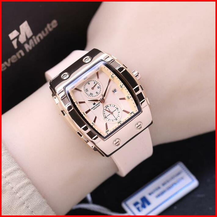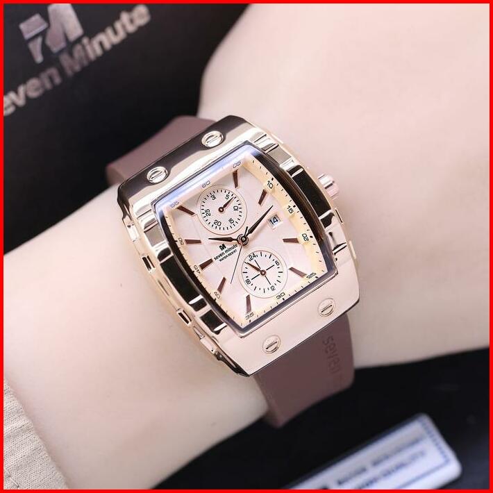 Jam Tangan Wanita Seven Minute M763 Original Rubber Karet Tanggal Aktif Chrono Hiasan Free Box Original Batrai Tahan Air