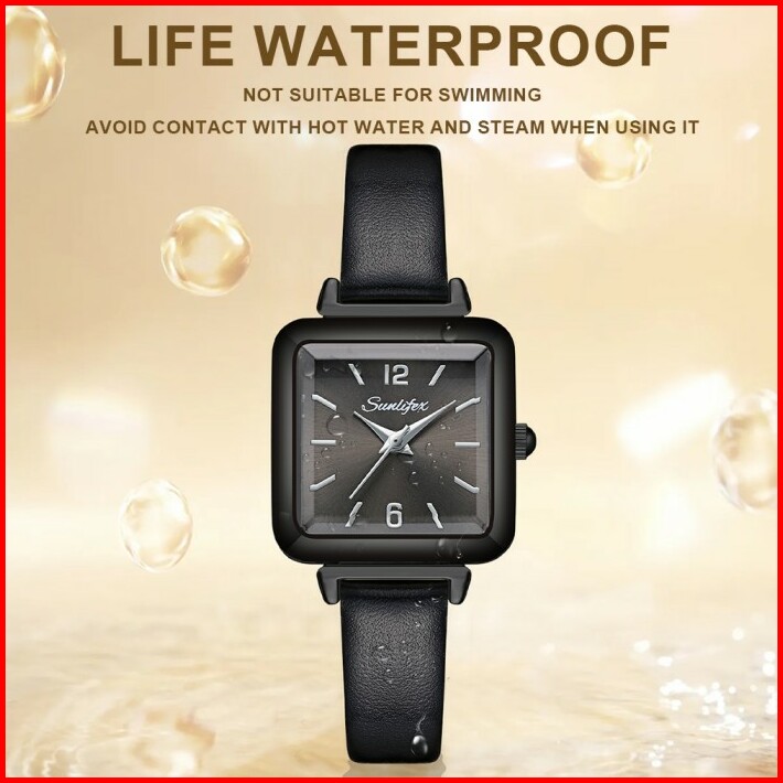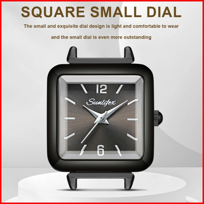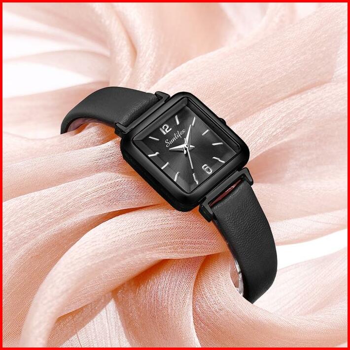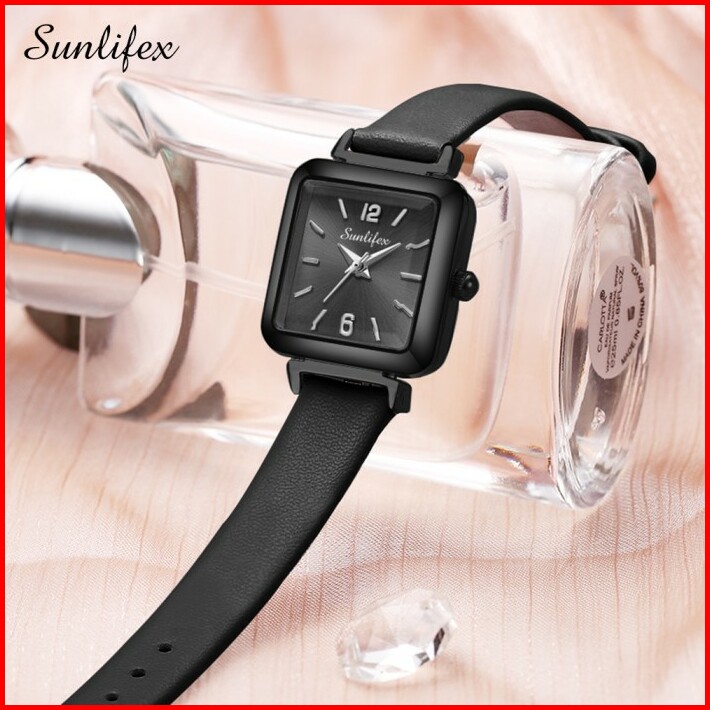 Sunlifex Jam Tangan Wanita Korea Antik Persegi Mini Anggun Tali Kulit