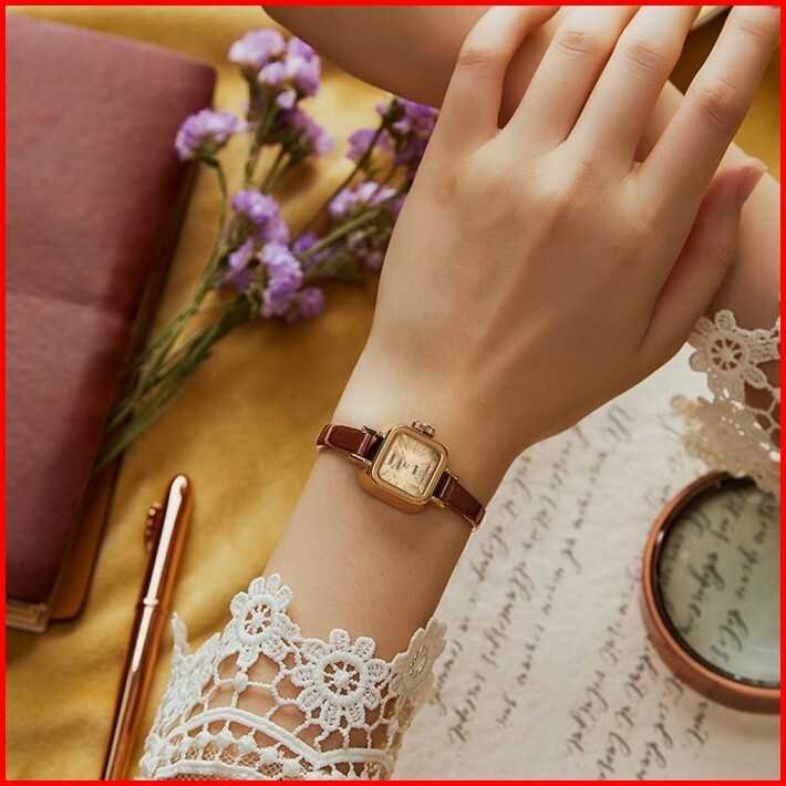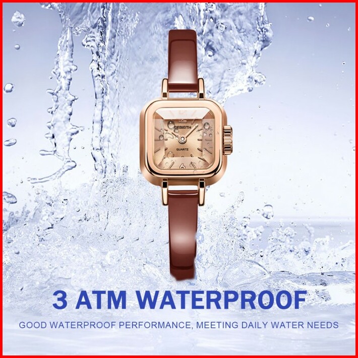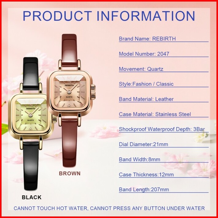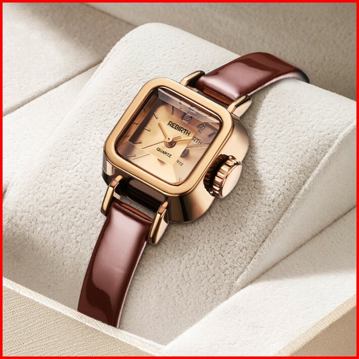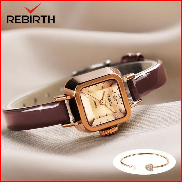 Rebirth Jam Tangan Wanita Kasual Elegan Kuarsa Persegi Tali Kulit