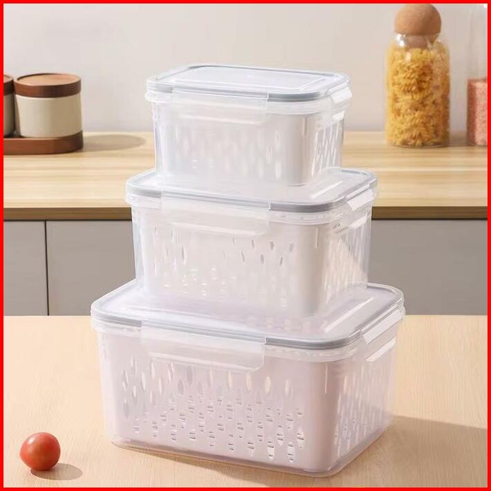 Combo Buy 1 Get 1 Keranjang Saring Tempat Penyimpanan Buah Dan Sayur Toples Kulkas Toples Serbaguna Bpa Free Food Grade
