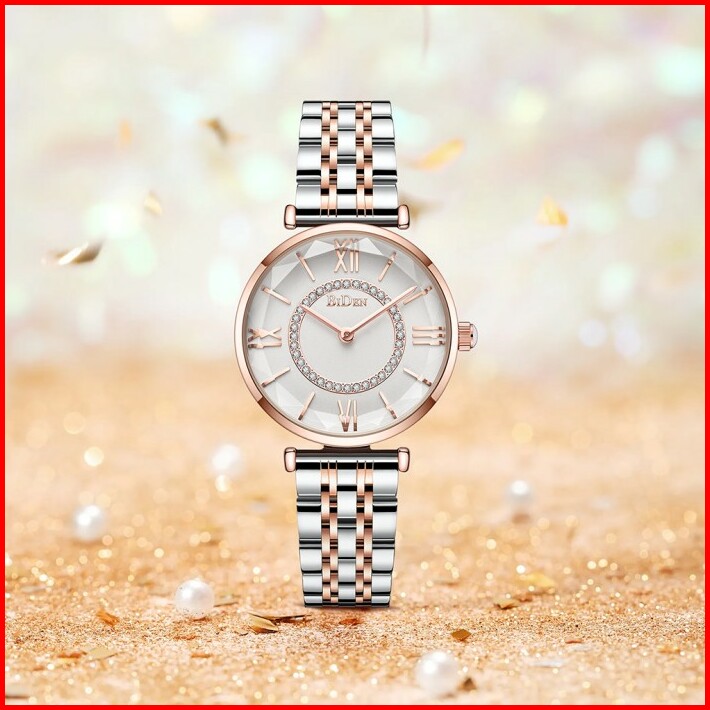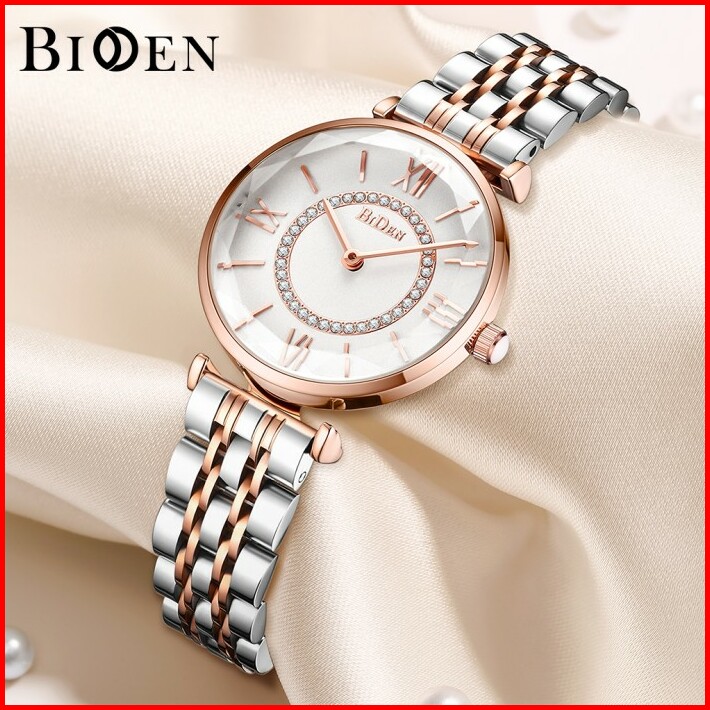 Biden Jam Tangan Wanita Bisnis Tali Stainless Steel Kuarsa Tahan Air