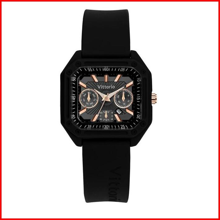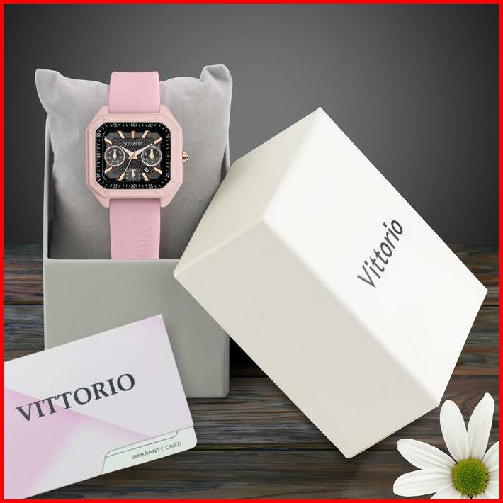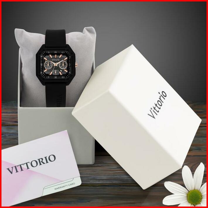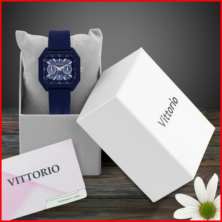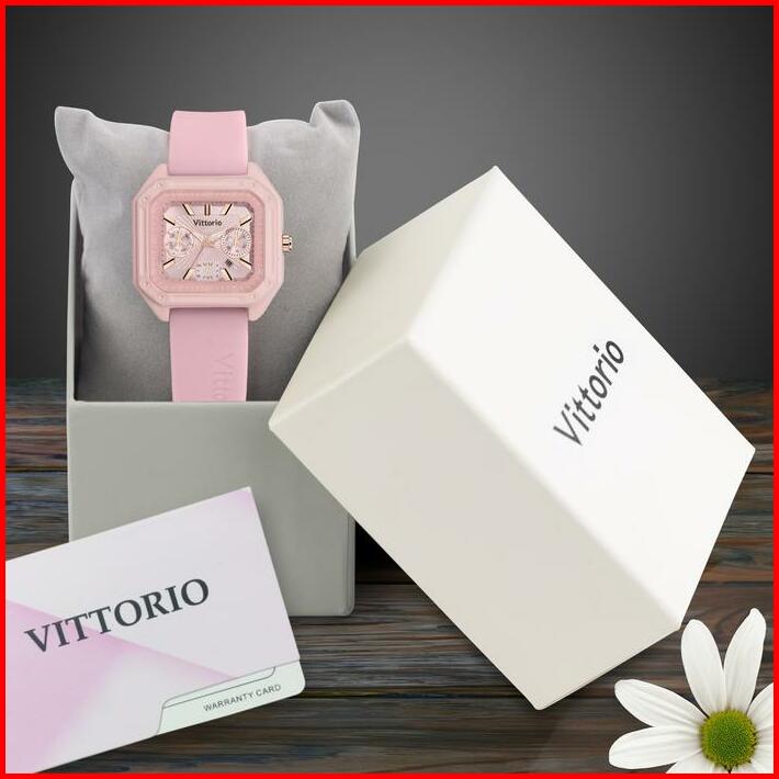 Diskon Jam Tangan Wanita Vittorio 7129 Rubber Tanggal Kaca Stainless Watches