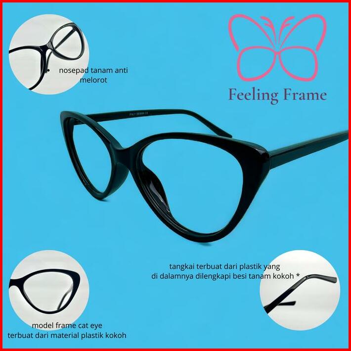 Frame Kacamata Cat Eye Jenny Series Bluecromic Frame Antiradiasi Blueray Lensa Cewek