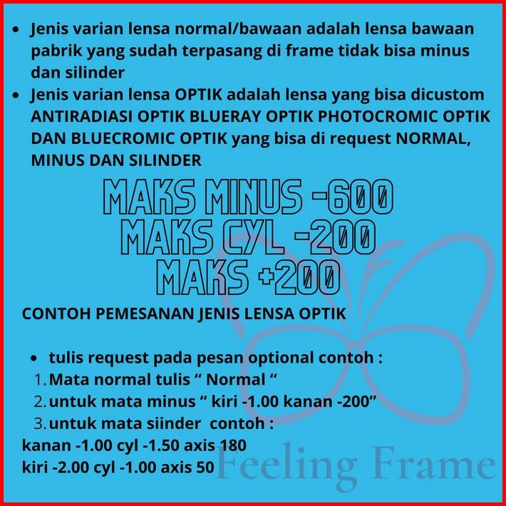 FRAME+LENSA NORMAL/BAWAAN, PHOTOCROMIC OPTIK, BLUERAY OPTIK, ANTI RADIASI OPTIK, BLUECROMIC OPTIK