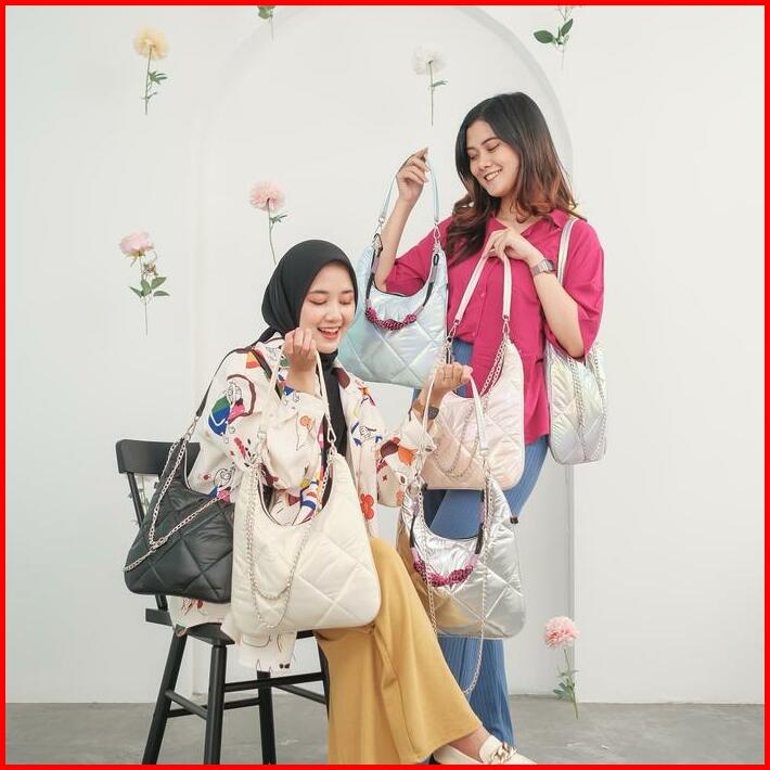 Localbyvivi Tas Wanita Sherra Bag Besar Sedang Slingbag Sholder Bag Tas Selempang Tas Hologram Hobo Bag Pink