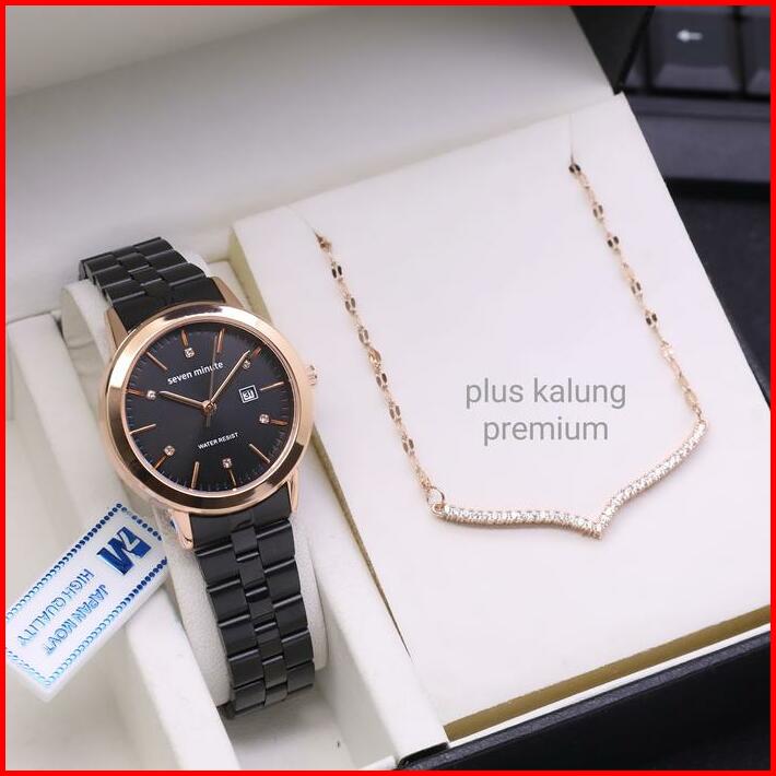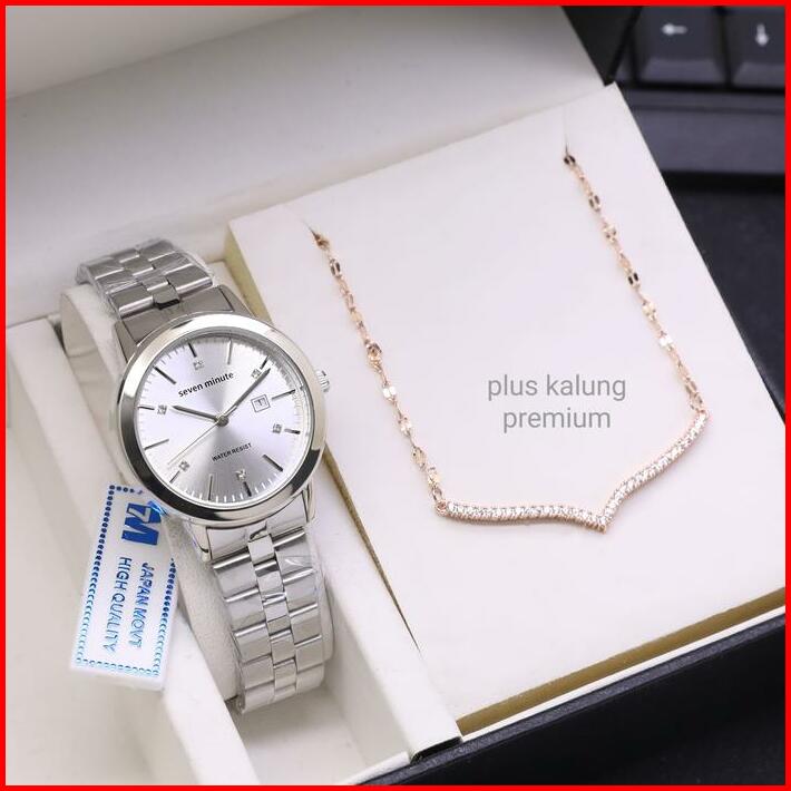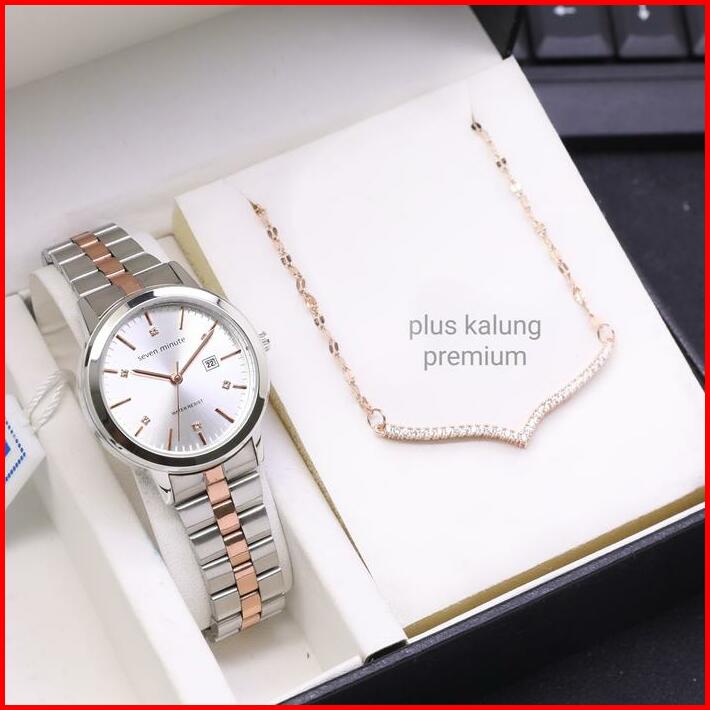 Bundling Kalung Jam Tangan Original Wanita Seven Minute M705 Cewek Tanggal Rantai Padat Analog Tahan Air Watches