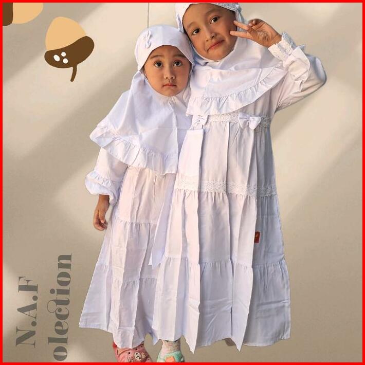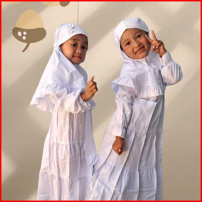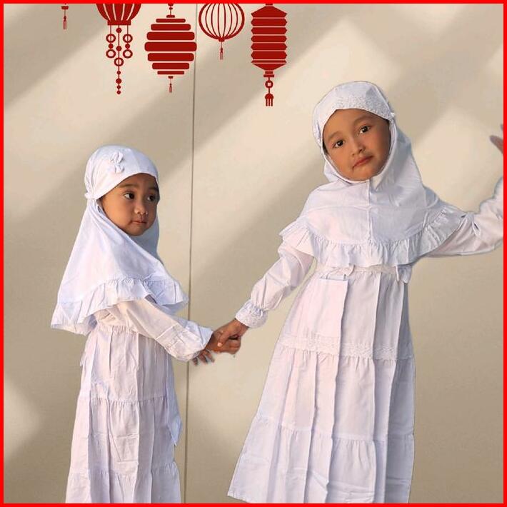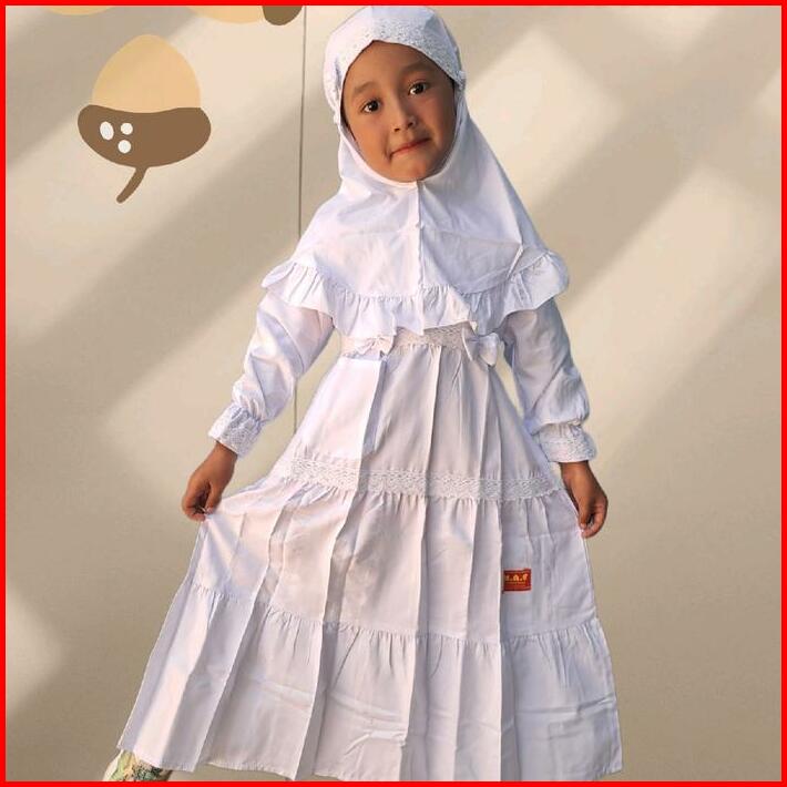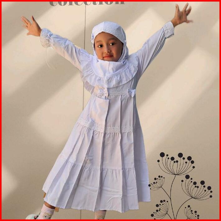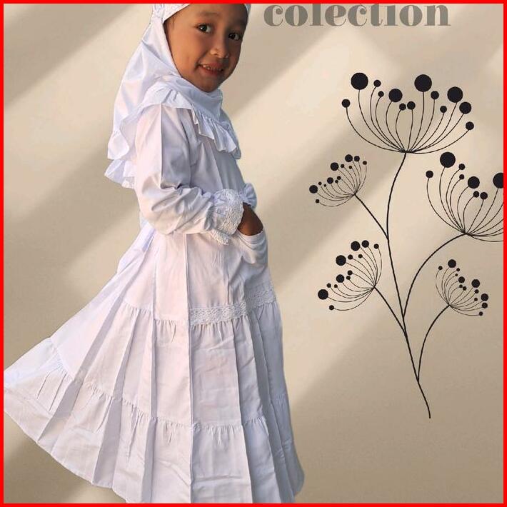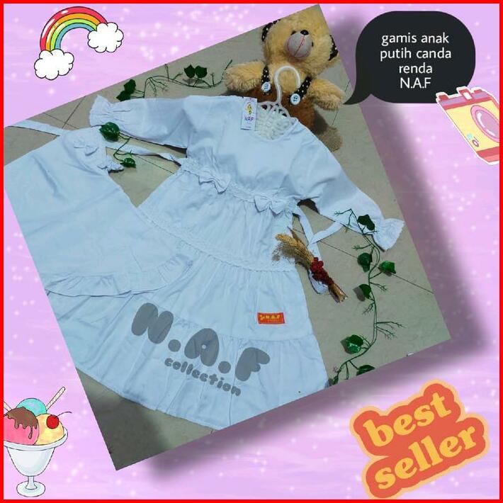 Gamis Anak Putih Canda Renda N.a.f Katun Motif Muslim Seragam Baju Sekolah Mewah Dress Remaja Bunga