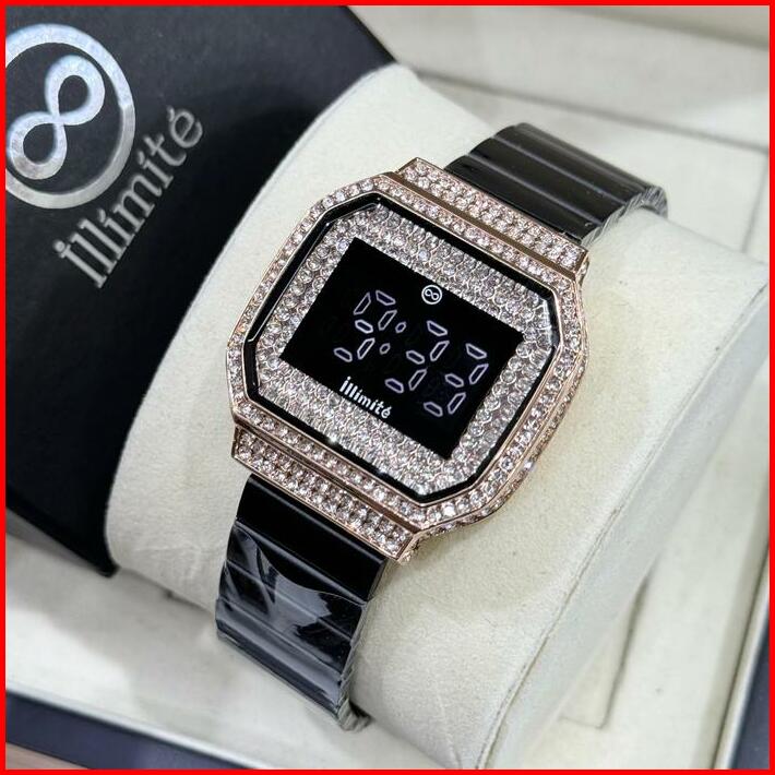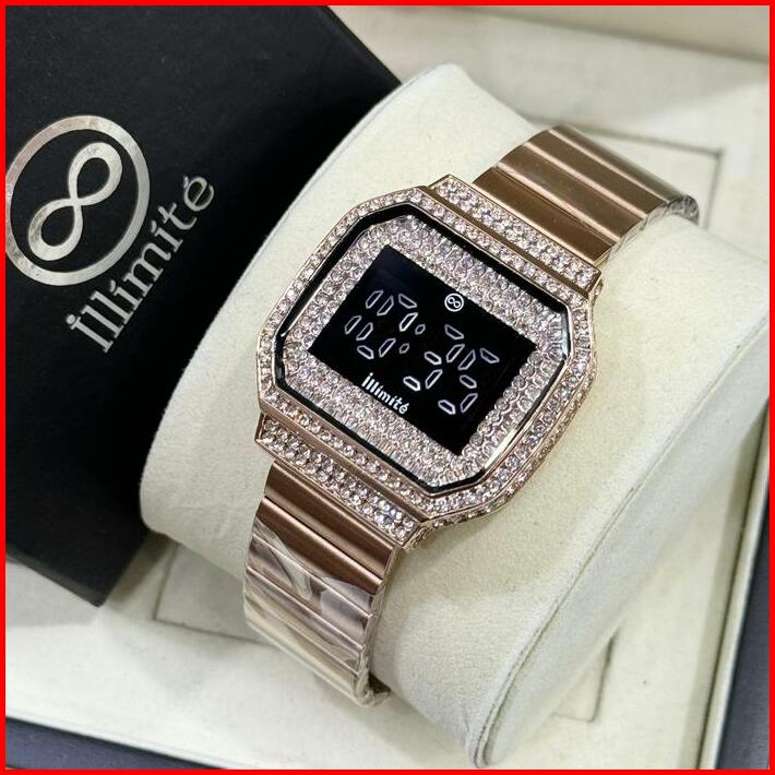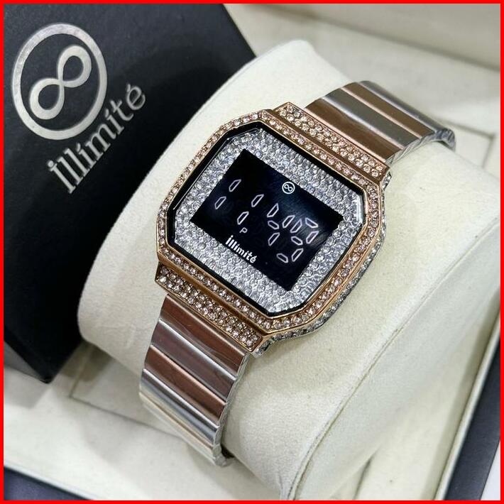 Lengkap Box Jam Tangan Wanita Illimite 8650 Rantai Stainless Steel Digital Petak Touch Screen