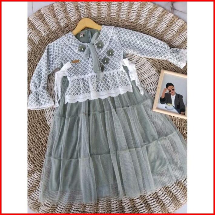 Gamis Anak Perempuan Brokat Mix Tille Premium Terbaru Dengan Motif Bunga Cantik