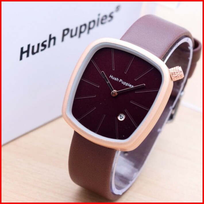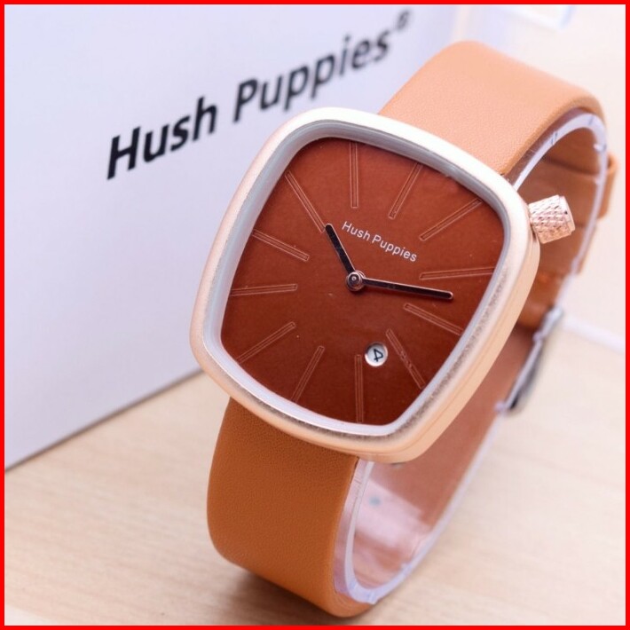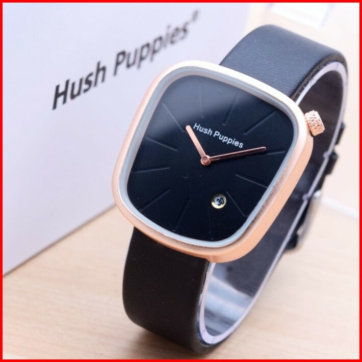 Jam Tangan Wanita Hush Puppies Set Segi Kulit Plat Hitam