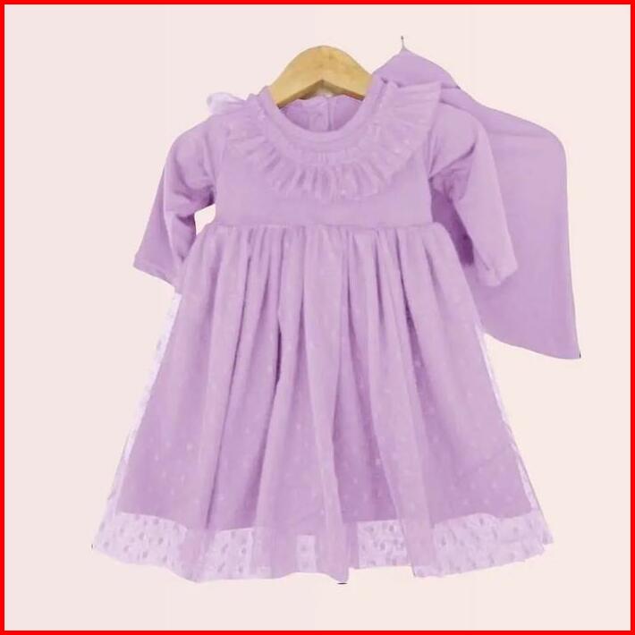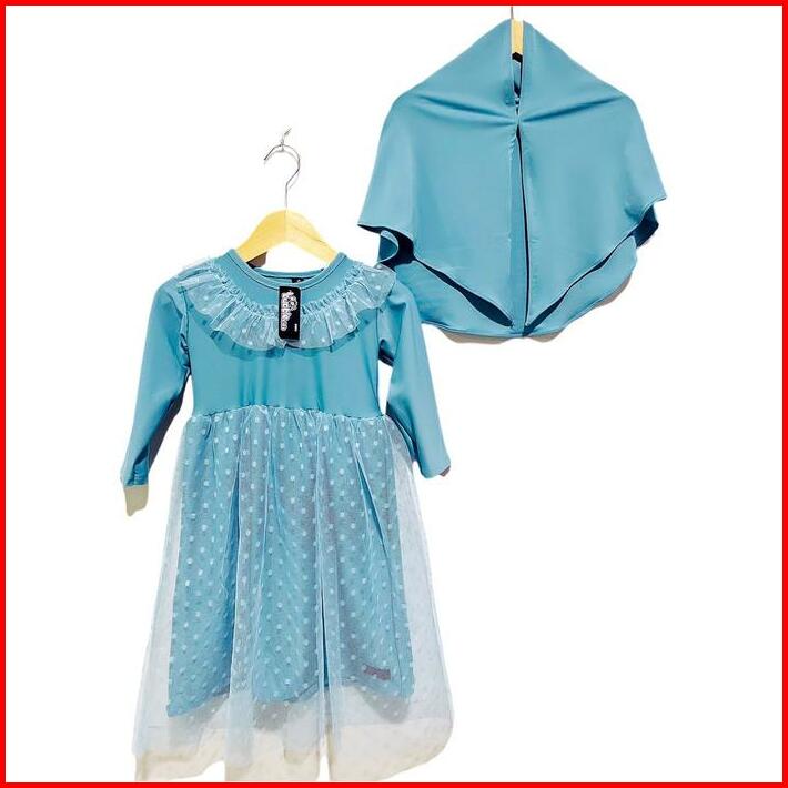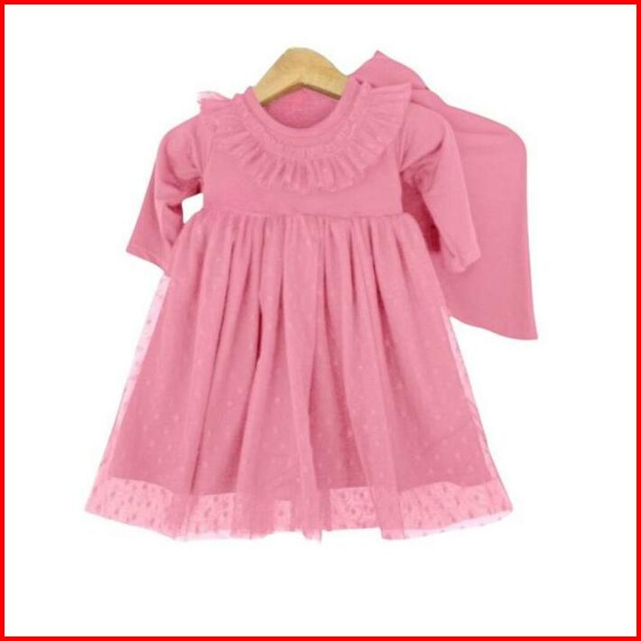 Gamis Hijab Tutu Tileu Dot Bayi Anak Balita Fashion Muslim Pakaian Perempuan Katun Polos Setelan Gaun Pesta 0-4 Tahun Pa