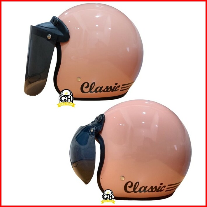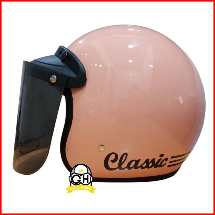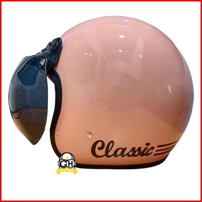 Helm Bogo Classic Peach Garis Retro Motor Dewasa Sni Free Kaca Sni