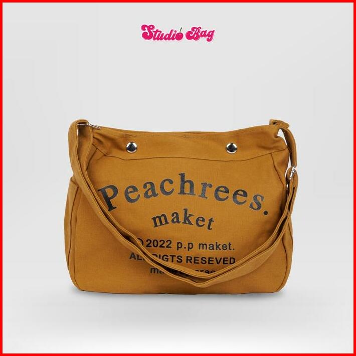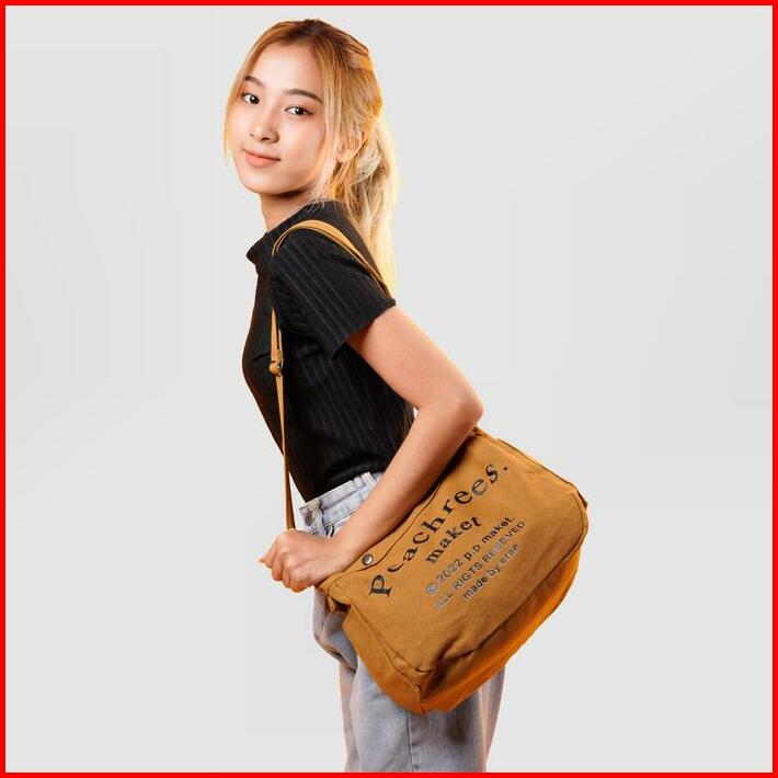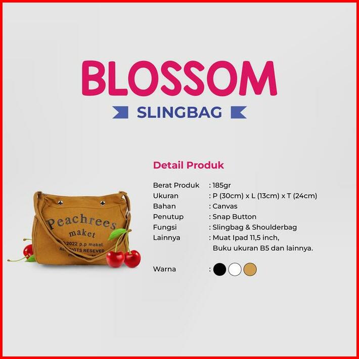 Blossom Peach Sling Bag Tas Selempang Canvas Elegant Hitam Slingbag Casual Wanita Pria Remaja Korean Lucu Style Kuliah K