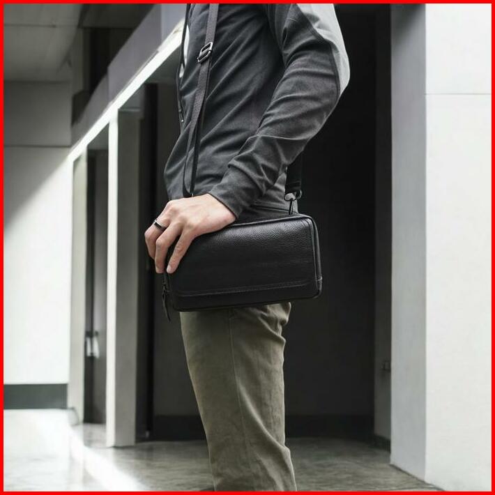 Caliandravieri Clutch Pria Kulit Asli Zukha Mini Slingbag Multifungsi Handbag Compact Tas Slempang