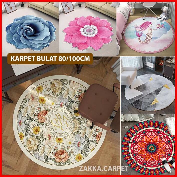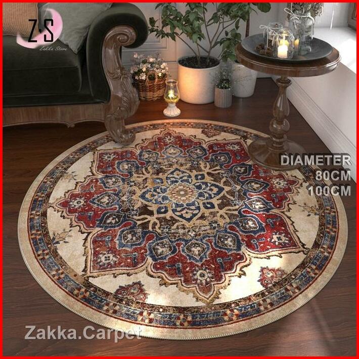 Zakkastore Carpet Bulat Polyester Diameter 80-100cm Karpet Meja Kursi Keset Ruang Tamu Keset