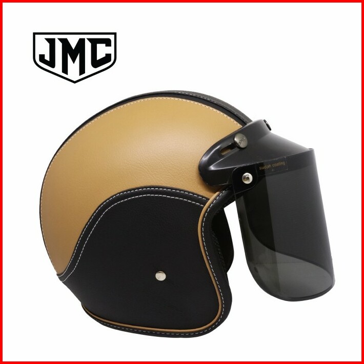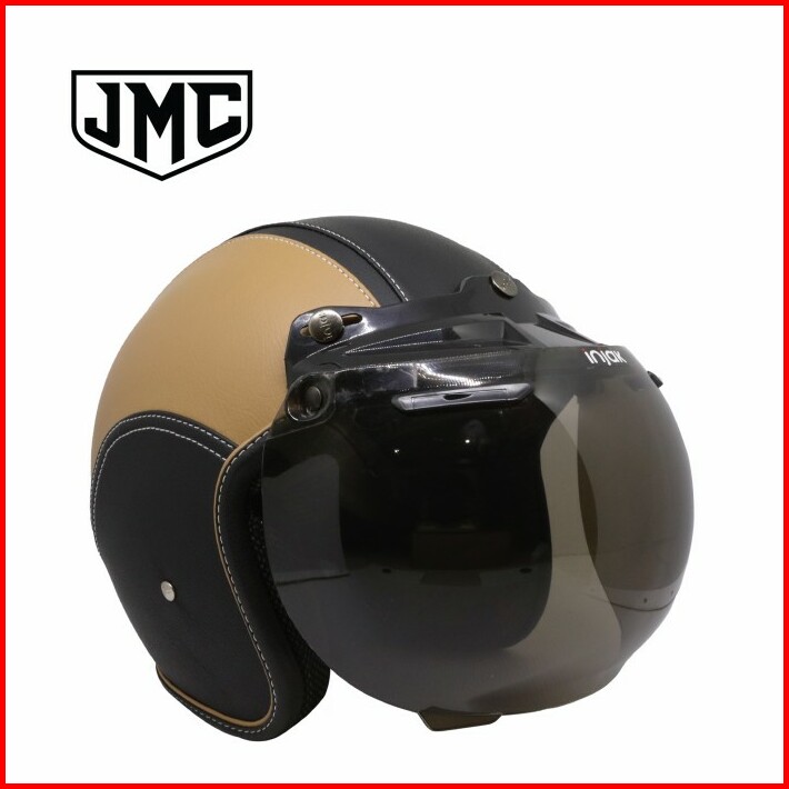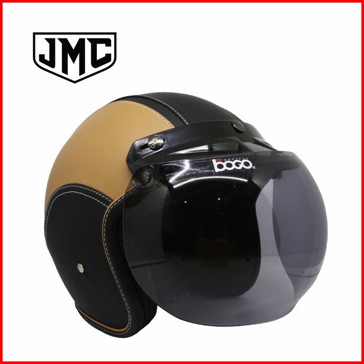 Helm Bogo Retro Cokelat Muda Full Leather Sni