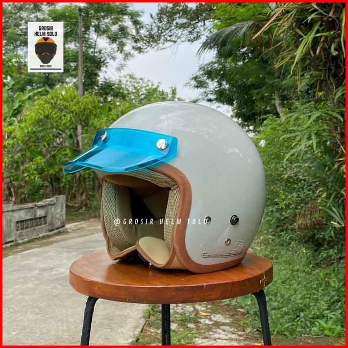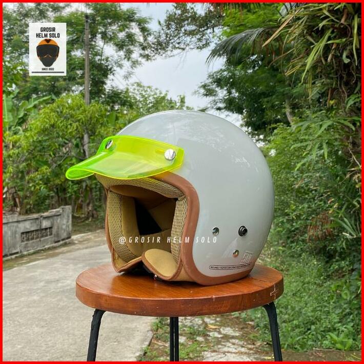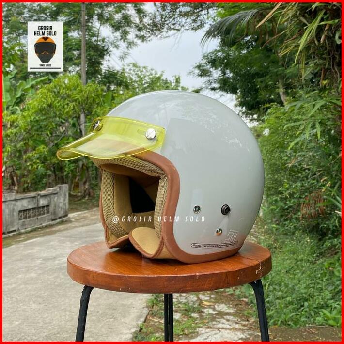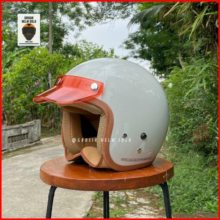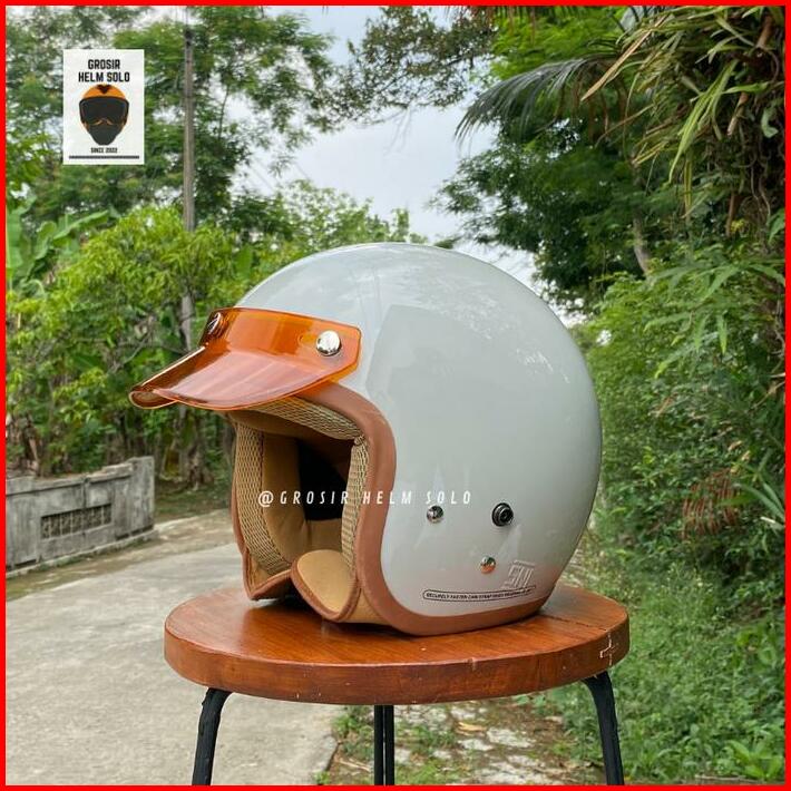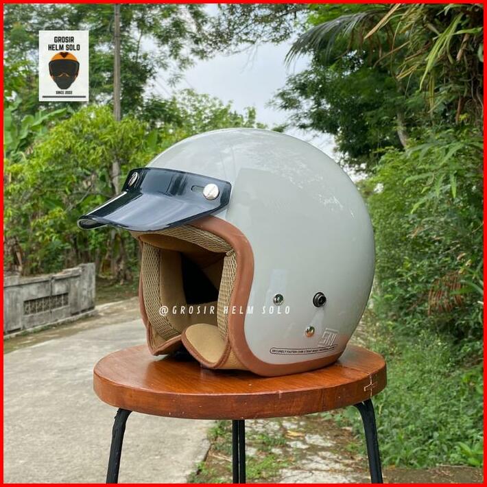 Helm Bogo Dewasa Pria Wanita List Coklat Full Leher Sni Warna Light Grey Glossy Pet Slim Japan