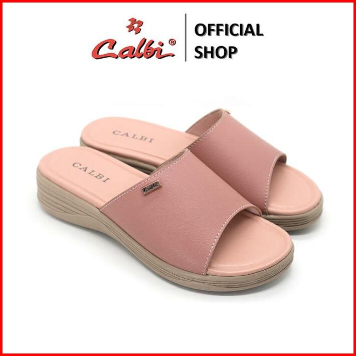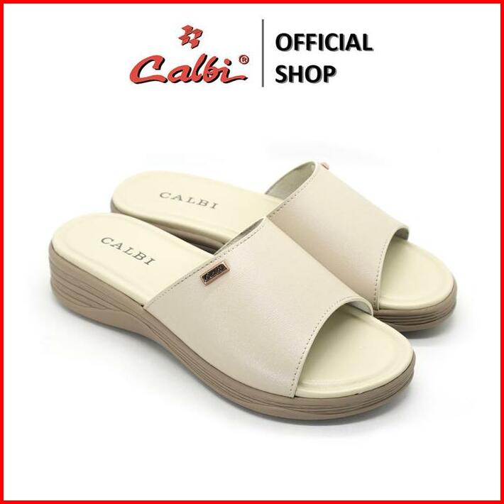 Calbi Sn 1216 Sandal Wedges Wanita Selop 4cm Kulit Ootd Casual Cara