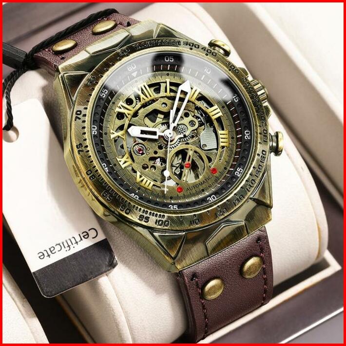 Jam Tangan Pria Otomatis Asli Mechanical Automatic Mesin Transparan Mekanis Gaya Bisnis Tahan Air Waterproof Casual Watc