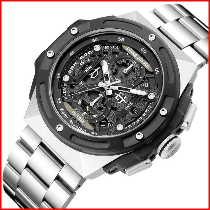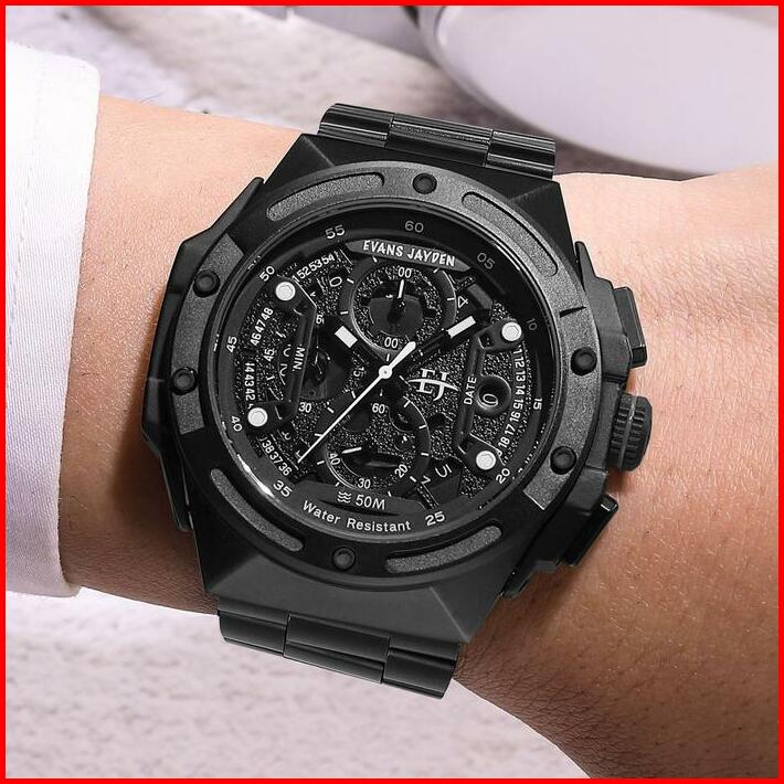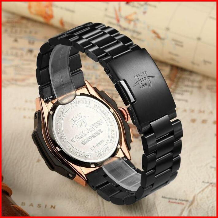 Jam Tangan Pria Evans Jayden 9547 Rantai Stainless Steel Chronograph Kaca Sapphire Water Resistant 5atm Watches Waterpro