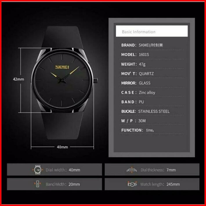 Jam Tangan Pria Analog Skmei 1601cl Black Water Resistant 30m