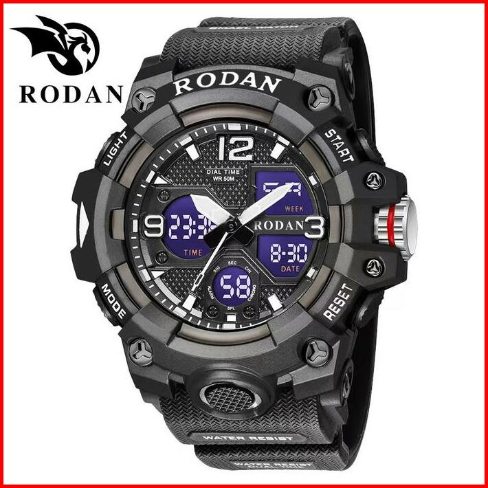 Rodan 8008 Jam Tangan Pria Double Time Anti Air Anti Karat Elegan Simple Free Box Kaca Stainless Bergaransi 1th
