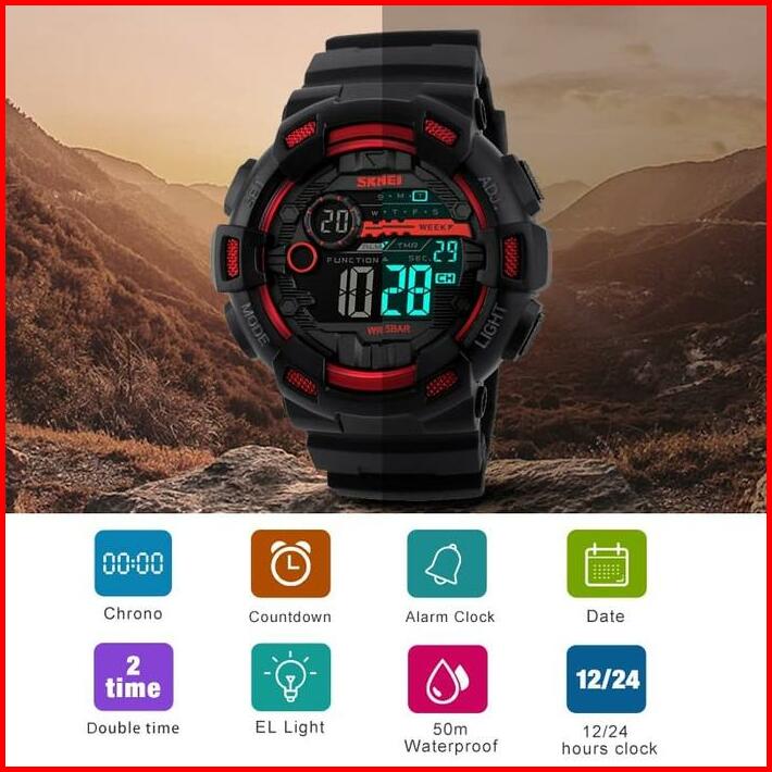 Jam Tangan Pria Digital Skmei 1243 Red Water Resistant 50m