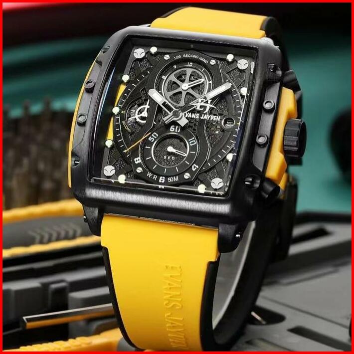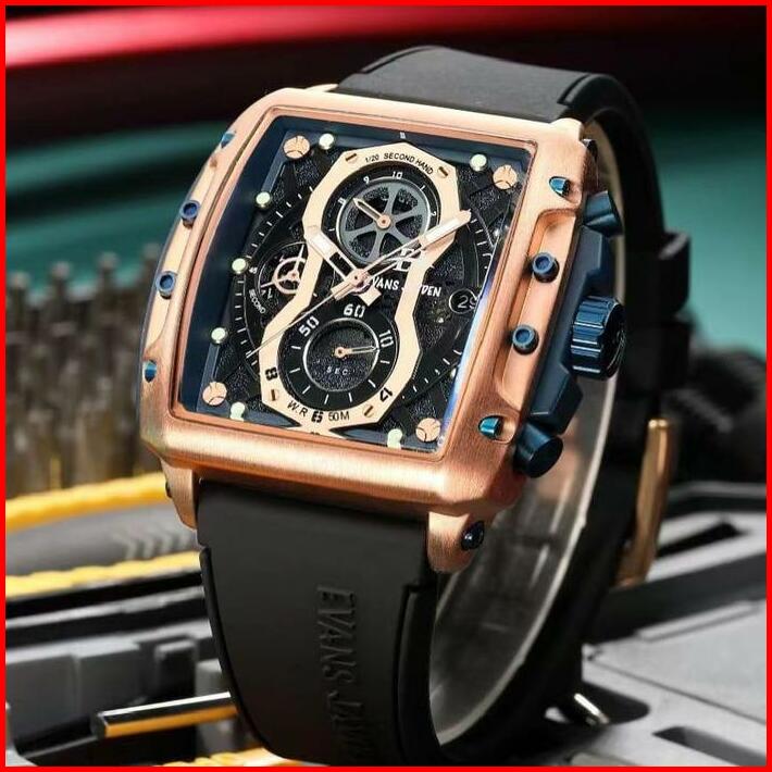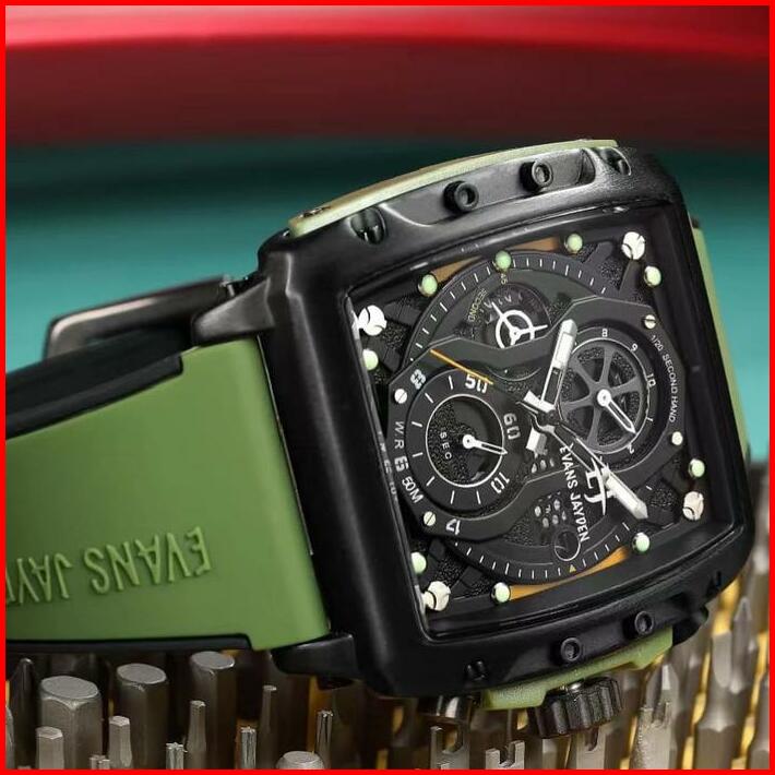 Diskon Evans Jayden Jam Tangan Pria 9550 Rubber Silicon Kaca Sapphire Chronograph Water Resistant 5 Atm Watches Stainles