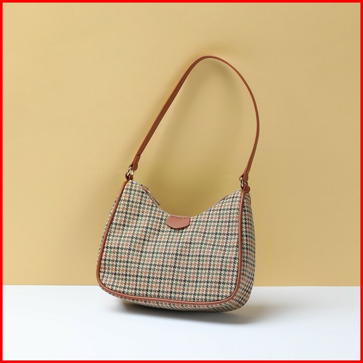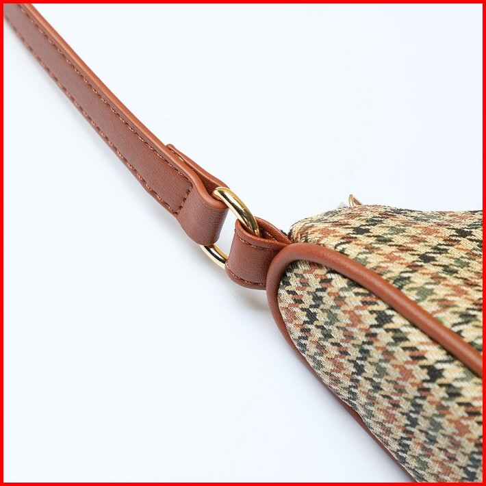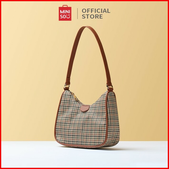 Miniso Slingbag Tas Bahu Houndstooth Dengan Penutupan Ritsleting