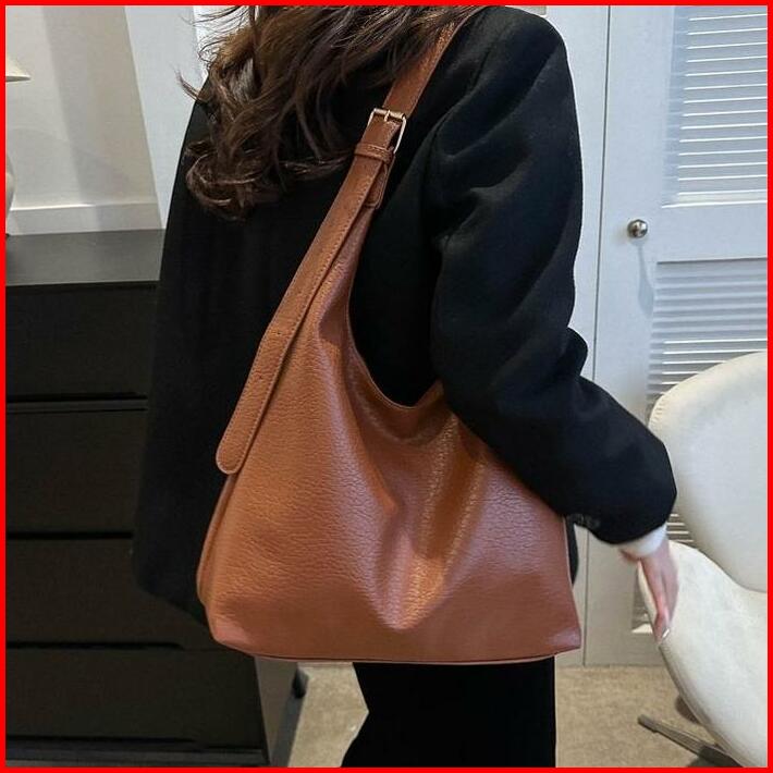 H T Tas Komuter Berkapasitas Besar Tas Ketiak Bahu Tunggal Populer Wanita Tas Jinjing Tekstur Premium Tote Selempang