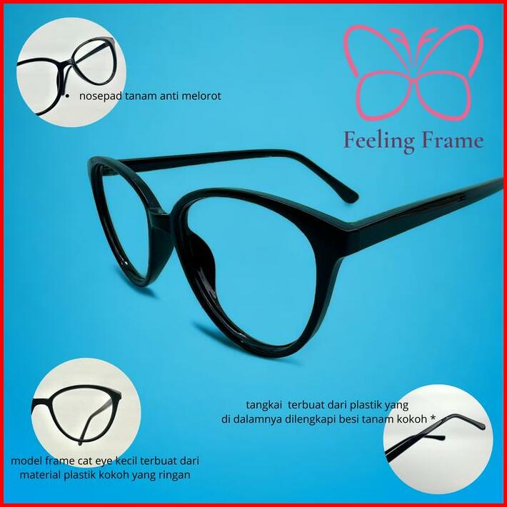 Frame Kacamata Cat Eye Hana Series Frame Perempuan Antiradiasi Blueray Cewek Lensa