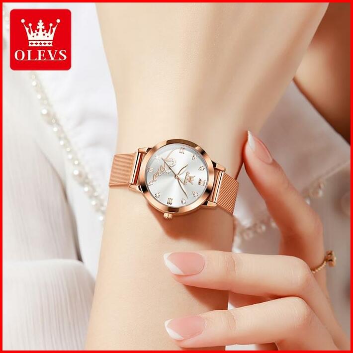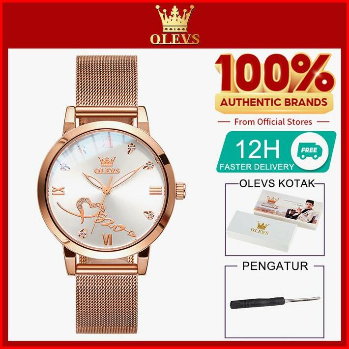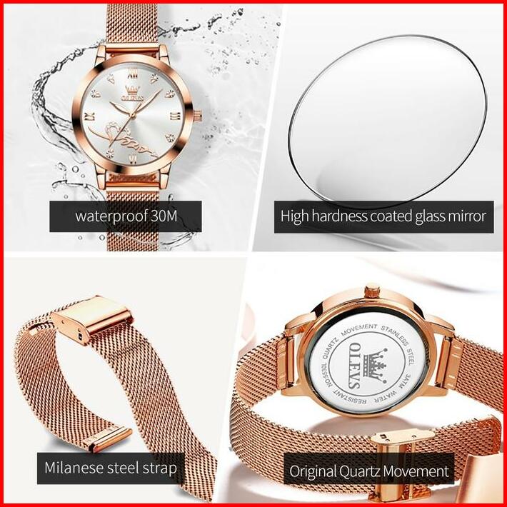 Olevs Jam Tangan Wanita Original Anti Air Tahan Kecil Branded Elegan Analog Rose Ultra-thin Women Watches New Model 5530