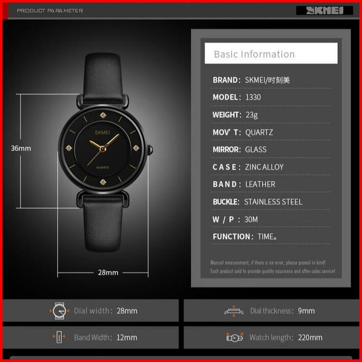Jam Tangan Wanita Analog Skmei 1330 Black Water Resistant 30m