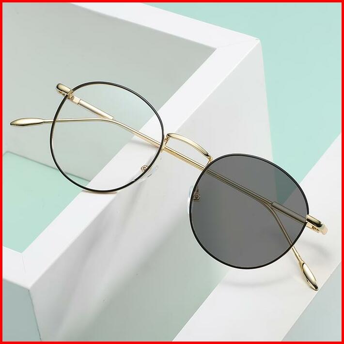 Frame Kacamata Kucumutu Bulat Besi Ringan Minus Silinder Anti Radiasi Photocromic