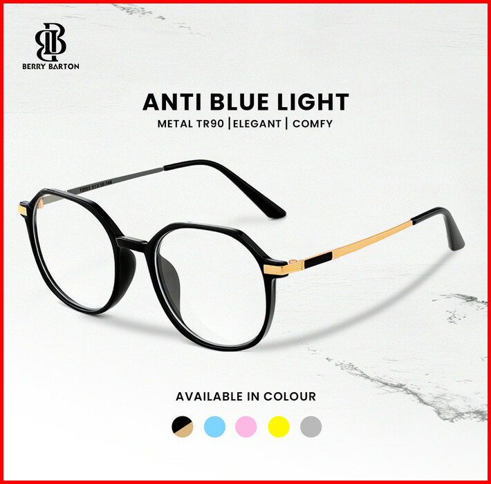 Berrybarton Kacamata Segi Enam Frame Lentur Tr Anti Anti Radiasi T2053