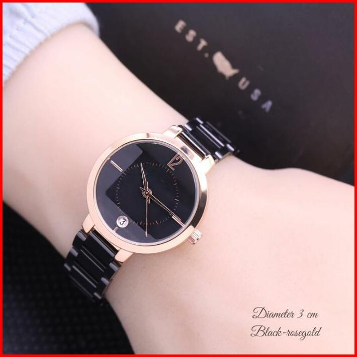 Jam Tangan Wanita Fashion Kaca Belimbing Fsl Belimbing Mewah Tanggal Aktif Tali Rantai