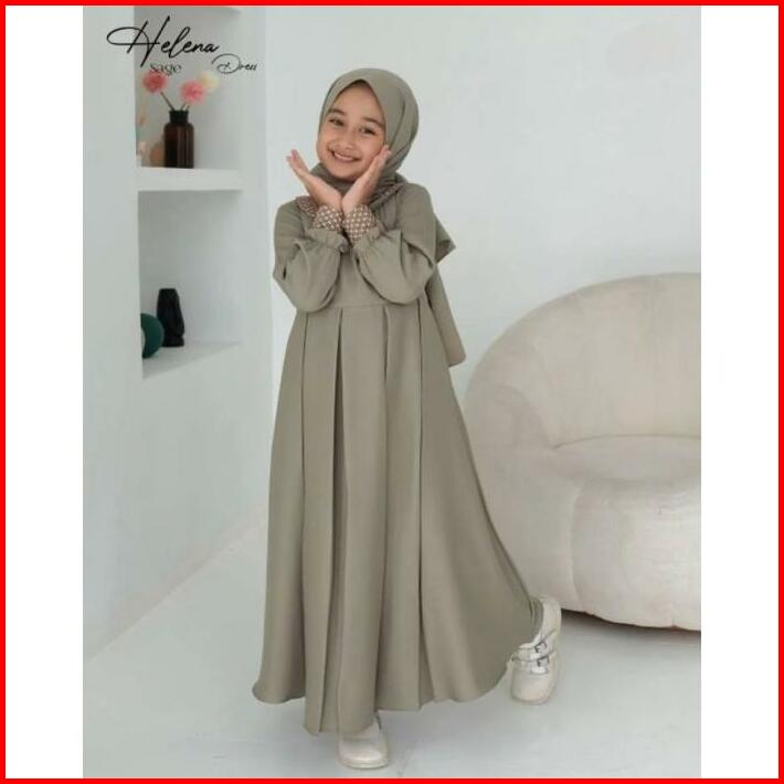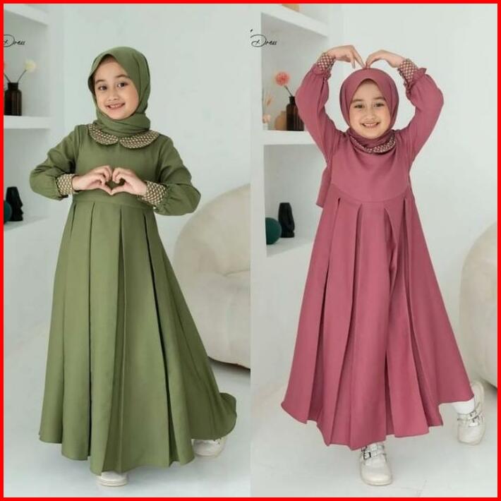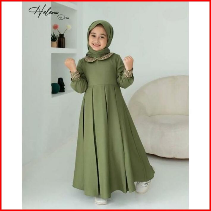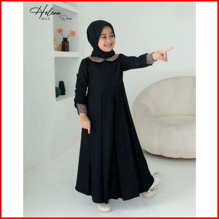 G-co Kids Helena Dress Gamis Anak Terbaru Usia 5-12 Tahun S.m.l.xl Dengan Motif Renda Kerah Dan Ujung Lengan