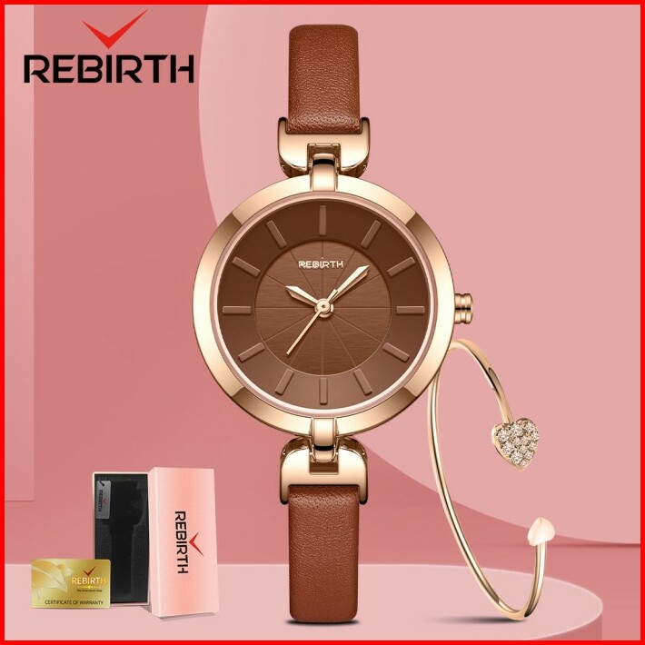 Rebirth Jam Tangan Wanita Tali Kulit Santai Gaya Jam Tangan Cewek