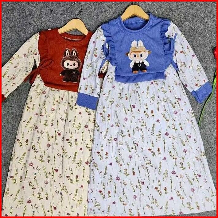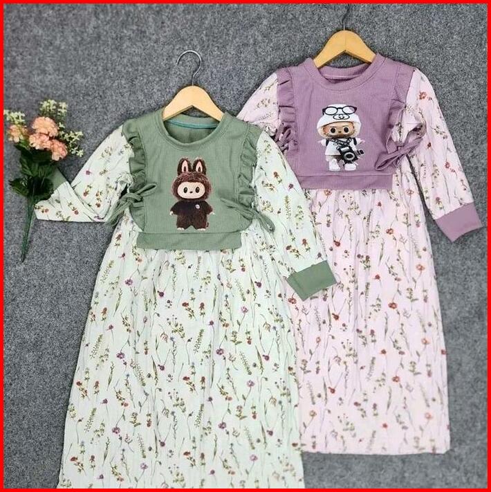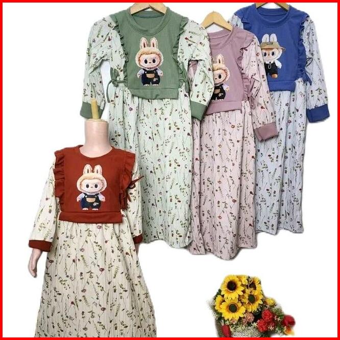 Gamis Anak Labubu Gamis Viral Gamis Labubu Viral Muslim Katun Dress Motif Lebaran