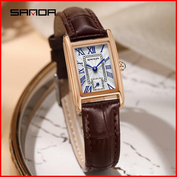 Sanda Jam Tangan Wanita Diskon Besar Paduan Fashion Elegan Kompak Kuarsa Wanita Mawar Jam Tangan Tahan Air 3atm Kulit Qu