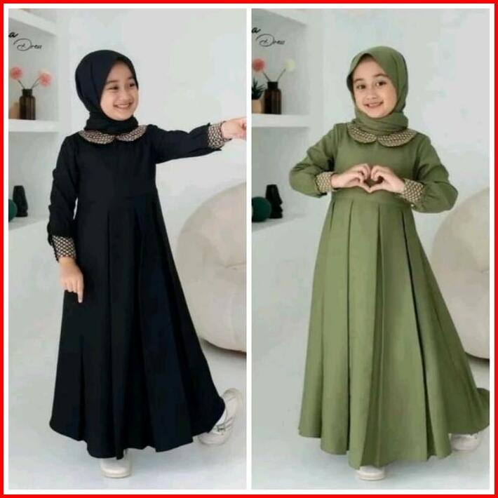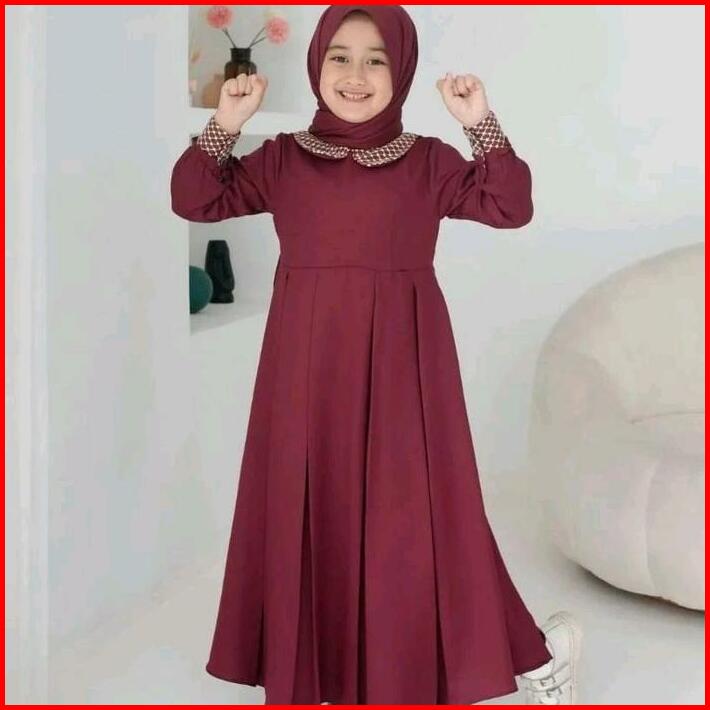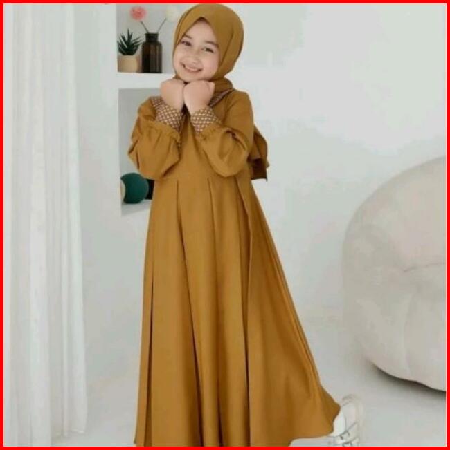 Gamis Anak Helena Kids Tanpa Hijab Dress Anak Trend 2024 Muslim Anak Perempuan 3-12tahun Gamis Anak Cringkel Airflow S M