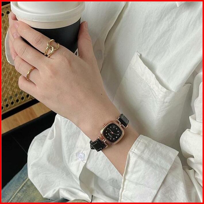 Favorich Jam Tangan Wanita Gogoey Model Retro Anggun Berlian Model Segi Tali Kulit Premium