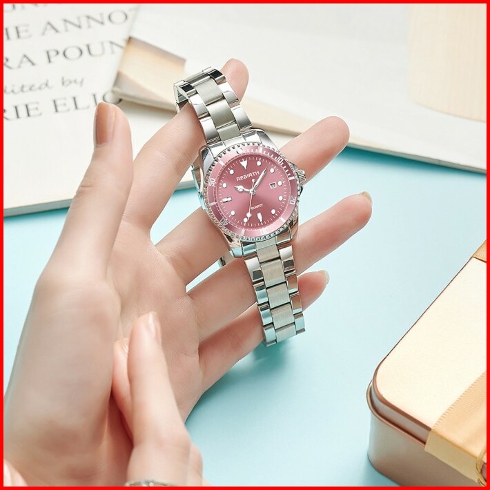 Jam Tangan Rebirth Wanita Santai Mode Tali Stainless Steel Tahan Air