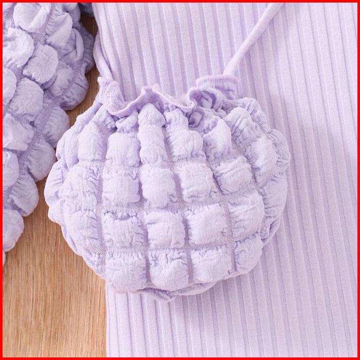 2-10tahun Dress 2in1 Tas Jagung Gaun Knit Tebal Bodycone Baju Anak Perempuan Polos Elegant