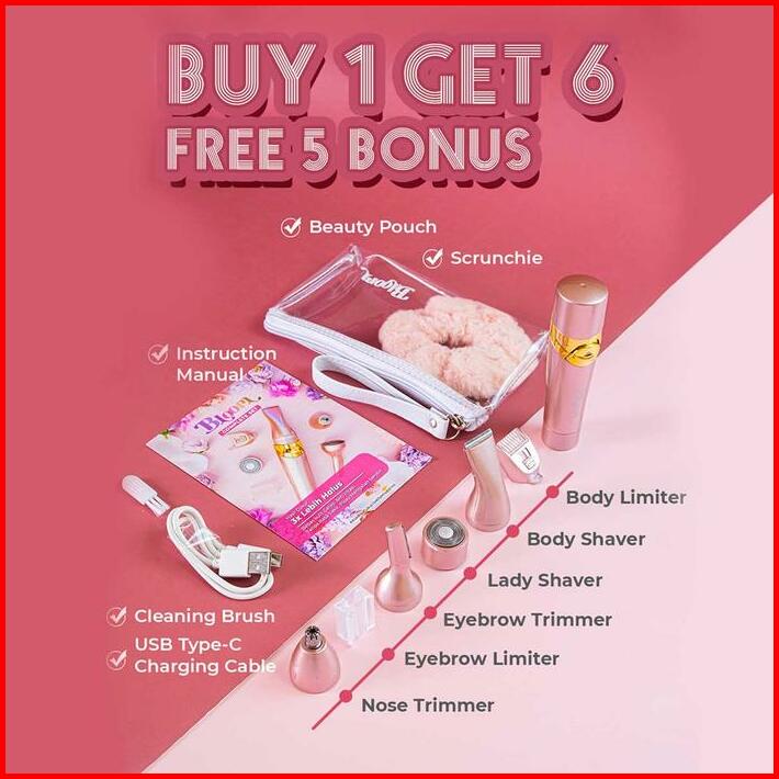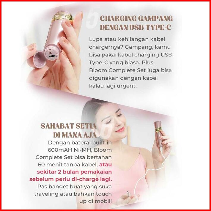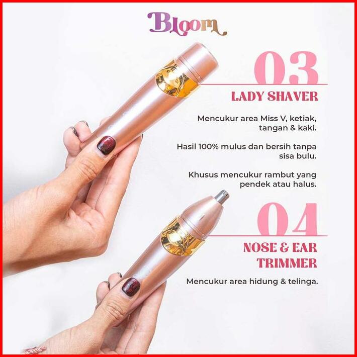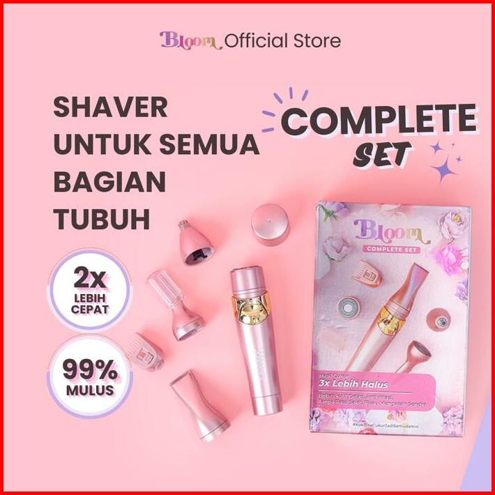 Bloom Complete Set Alat Cukur Elektrik Wanita Untuk Area Kemaluan Ketiak Tangan Kaki Wajah Alis Dan Hidung