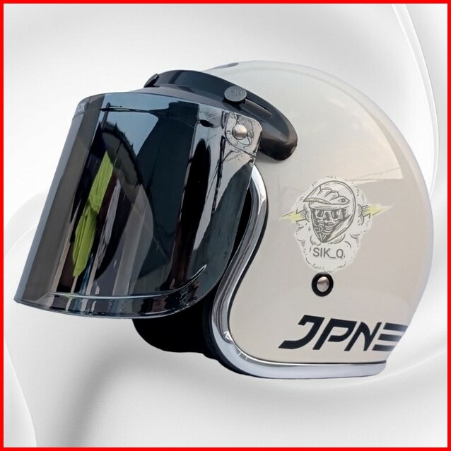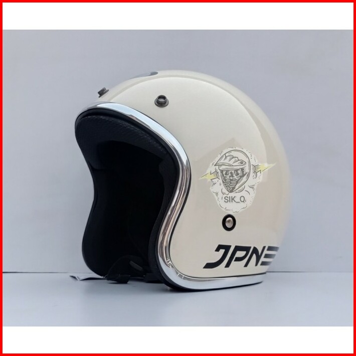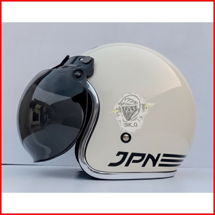 Helm Bogo List Chrome Jpn Cream Gloss Kaca Datar Cembung-helm Bogo