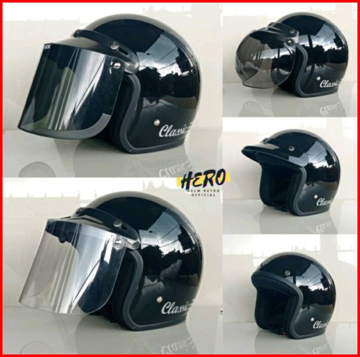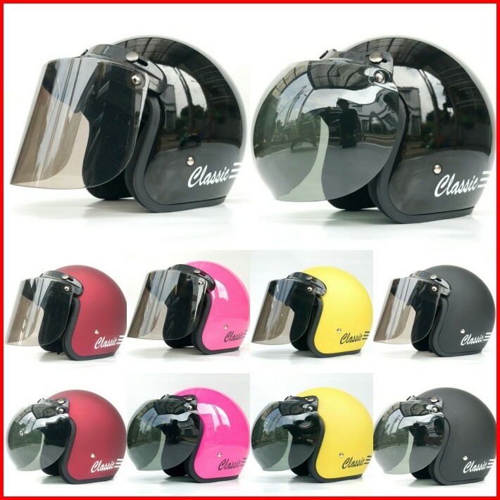 Helm Bogo Classic Garis Retro Kaca Datar Dan Cembung Murah