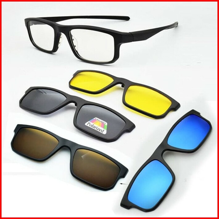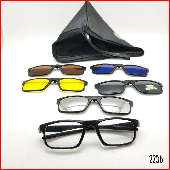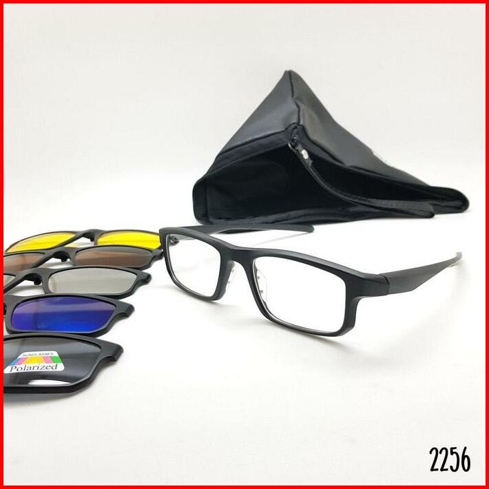Kacamata Frame Pria Wanita Clip On 5 Lensa 2256 Clipon Polarized